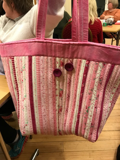 Torunn gjekk på kurs i haust med Helle, har sydd brikker med "Spot on"- linjal og